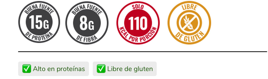 Crispis de Soya (Proteína de Soya, Tapioca, Sal), Inulina, Glicerina, Chocolate 10% (Azúcar, Aceite de Palma, Cacao, Cacao en Polvo, Sorbitol, Lecitina de Soya, Vainilla), Polidextrosa, Hojuelas de Avena, Jarabe de Tapioca, Crispis de Proteína de Suero de Leche (Proteína de Suero de Leche Aislada, Proteína de Suero de Leche Concentrada, Tapioca, Carbonato de Calcio, Lecitina de Girasol), Caramelo Salado 5%, Proteína de Leche Concentrada, Aceite de Girasol, Saborizante Natural, Proteína de Arroz, Agar. Protein Snack: Elaborado en líneas que también procesan huevos.