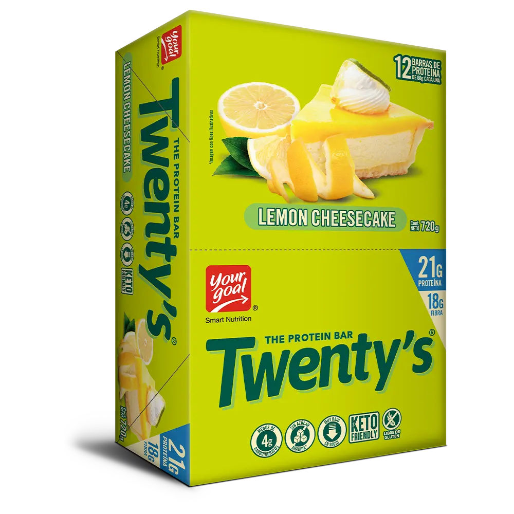 Your Goal, Twenty's, snack, barra, proteína, nutrición, fibra, limón, cheesecake, lemon, suplementos, deporte, entrenamiento, sport, training, actividad física, keto friendly, keto, dieta, libre glúten, sin azúcar añadida, low carb